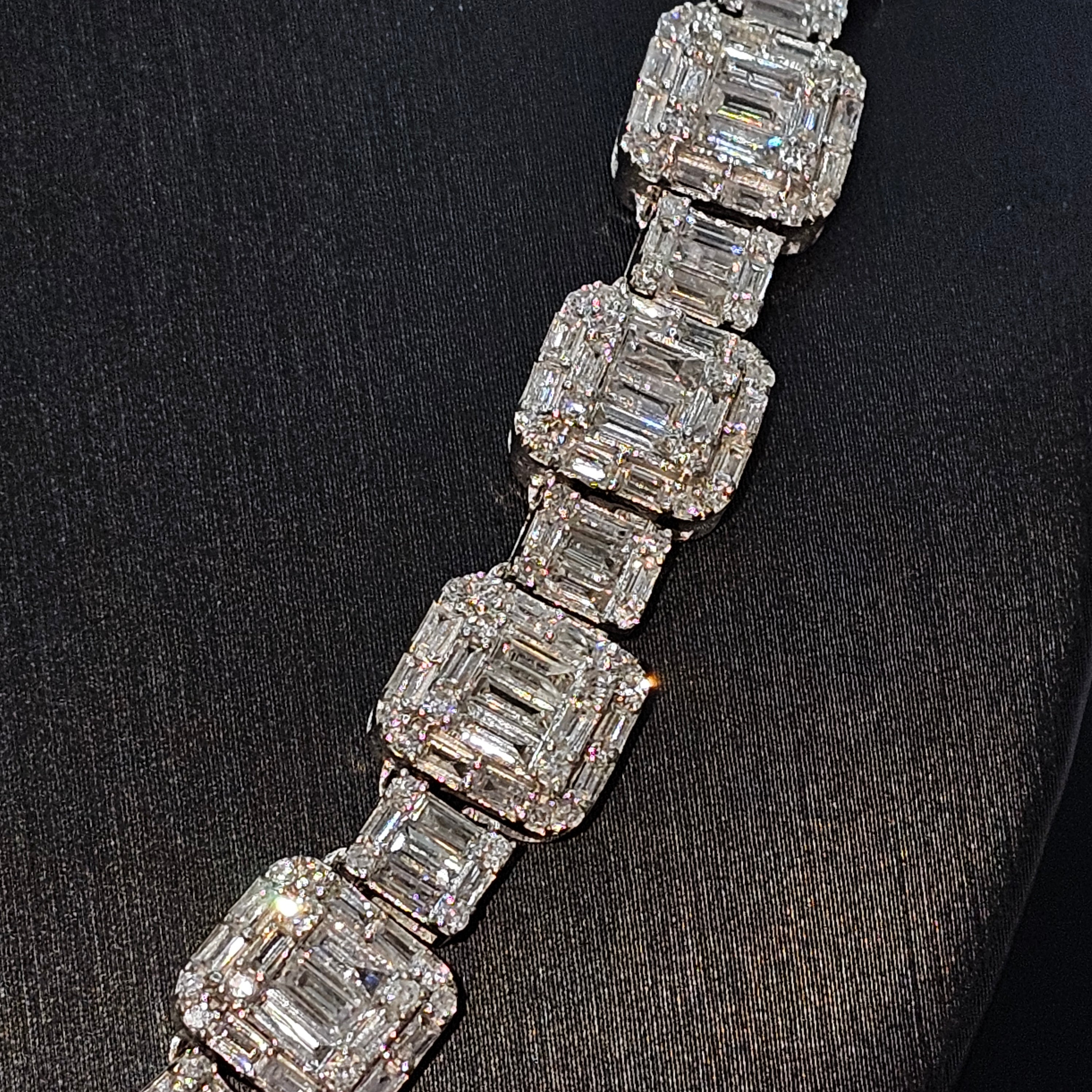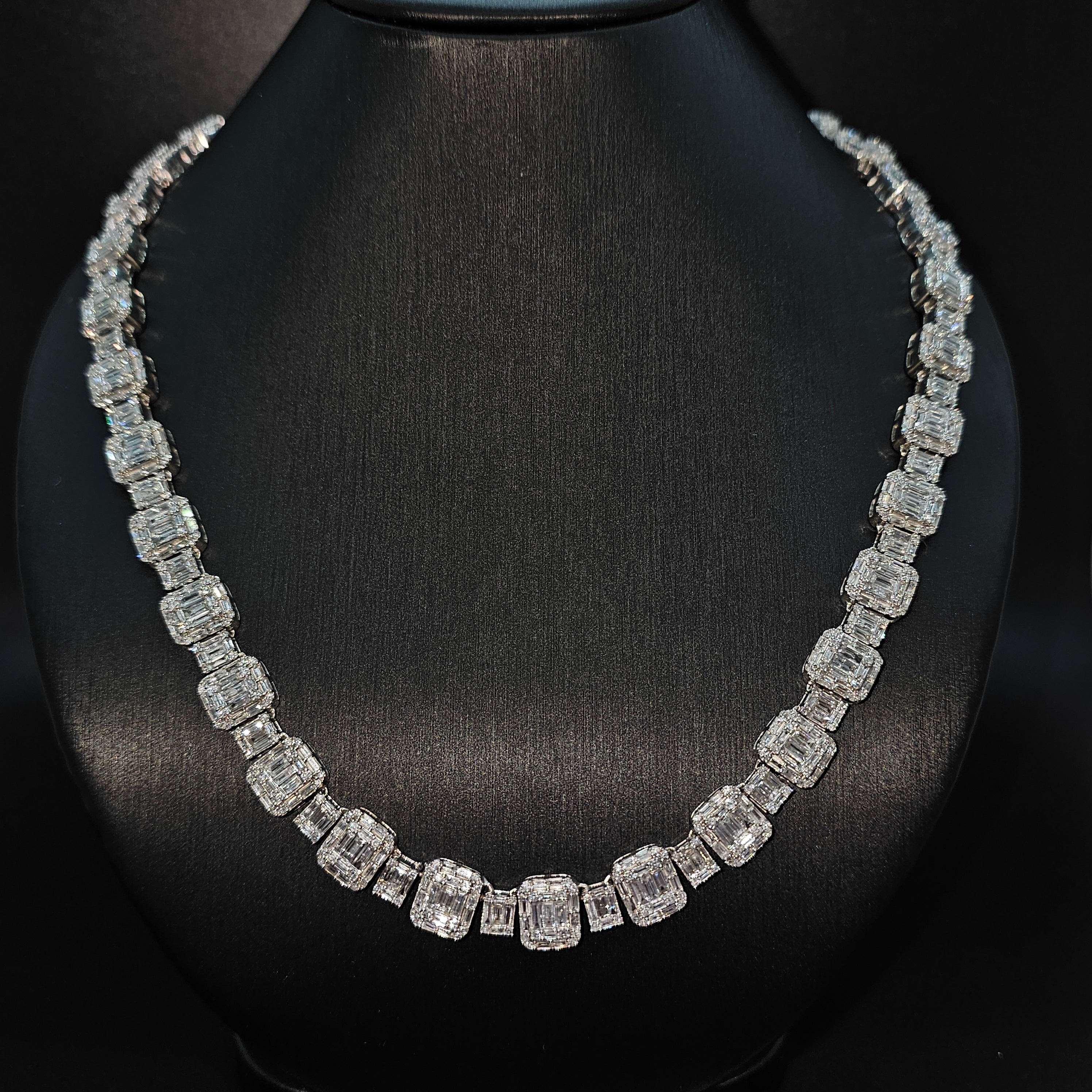 White Gold Natural Diamonds Baguette & Round Diamonds Chain