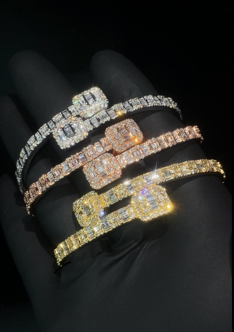 Natural Diamonds Baguette with Round Bangle Bracelets 10k Gold